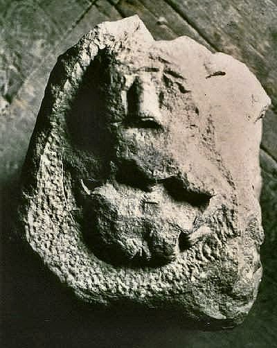 to carvings from Rahan and at Cloghan Castle. The head has no ears and