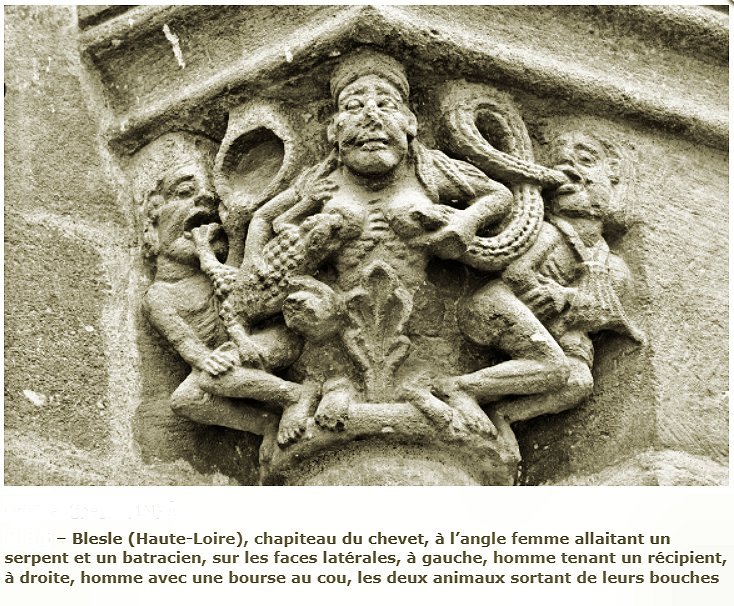..while at Châteaumeillant (Cher) Luxuria is represented by a splay-legged female exhibitionist who grasps two serpents